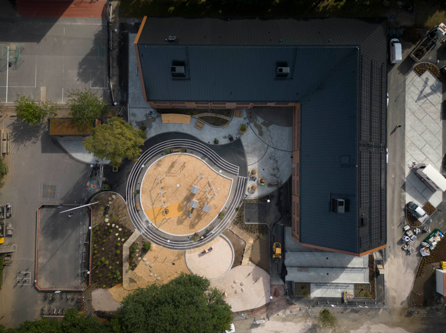 Den nya skolbyggnaden ersatte äldre lokaler och rymmer klassrum, grupprum och administrativa ytor anpassade för verksamhetens behov. I byggnaden finns även tillagningskök och matsal med kapacitet för upp till cirka 500 elever. Utemiljön har utvecklats för att skapa en trygg och stimulerande skolgård för eleverna.